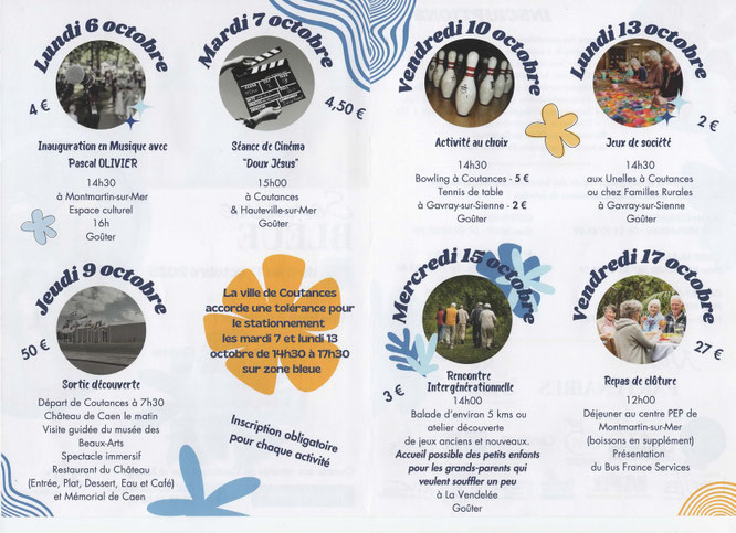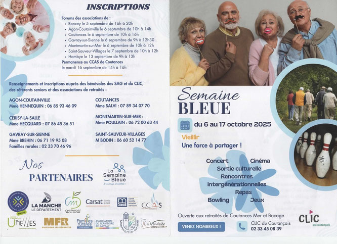 - Semaine bleue, pour le pôle Coutances, s'inscrire auprès de Mme Voisin.